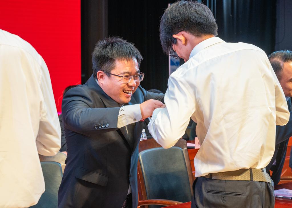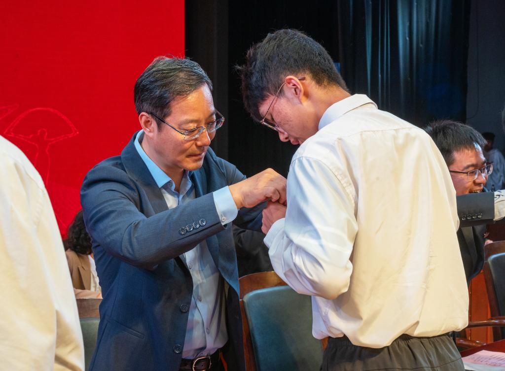 随后,学院班子成员为新生代表佩戴校徽。校徽承载着学校的治学精神,戴上了校徽,即代表着长大人的身份,更承载着“公为天下,路向远方”的学院精神,正式开启属于新一代公路人的逐梦之旅。