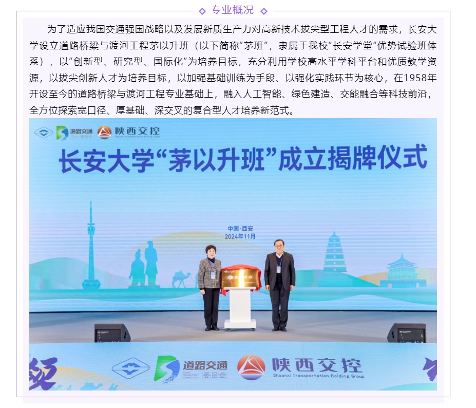 专业介绍 | 道路桥梁与渡河工程(茅以升班)专业